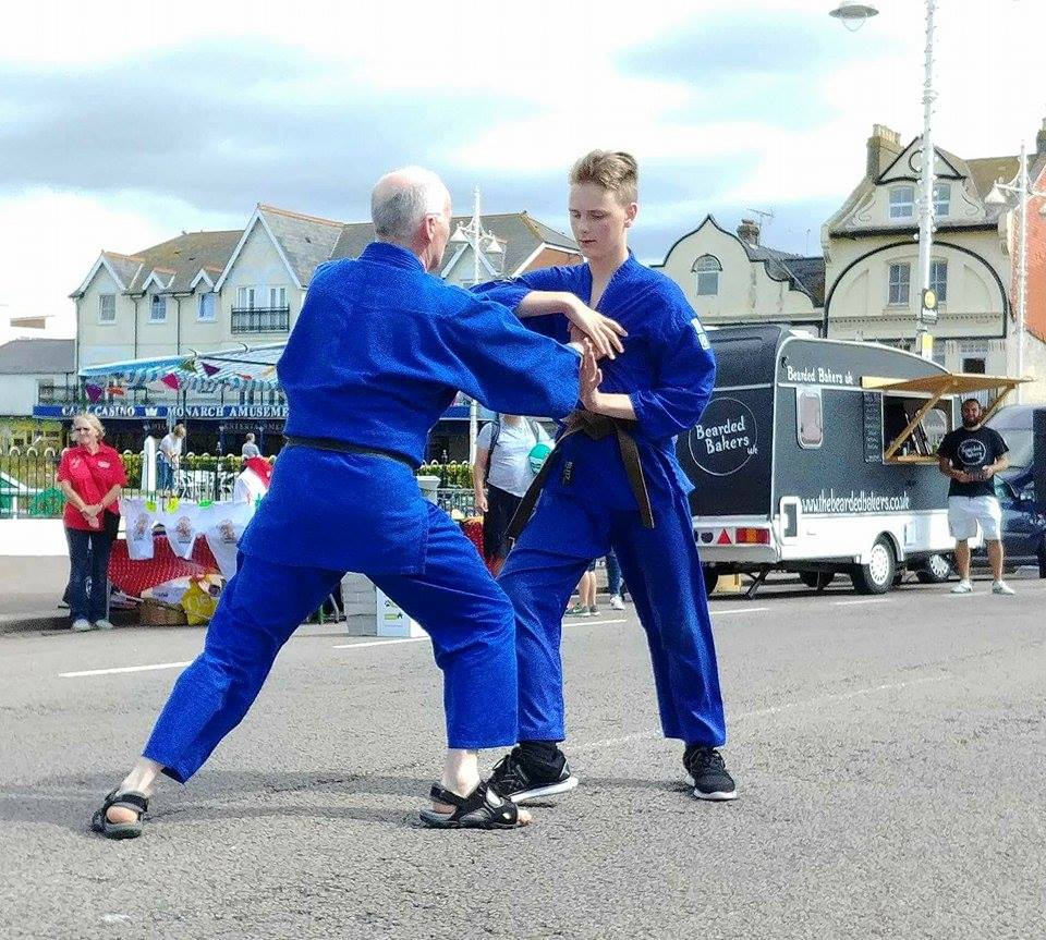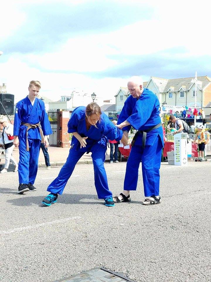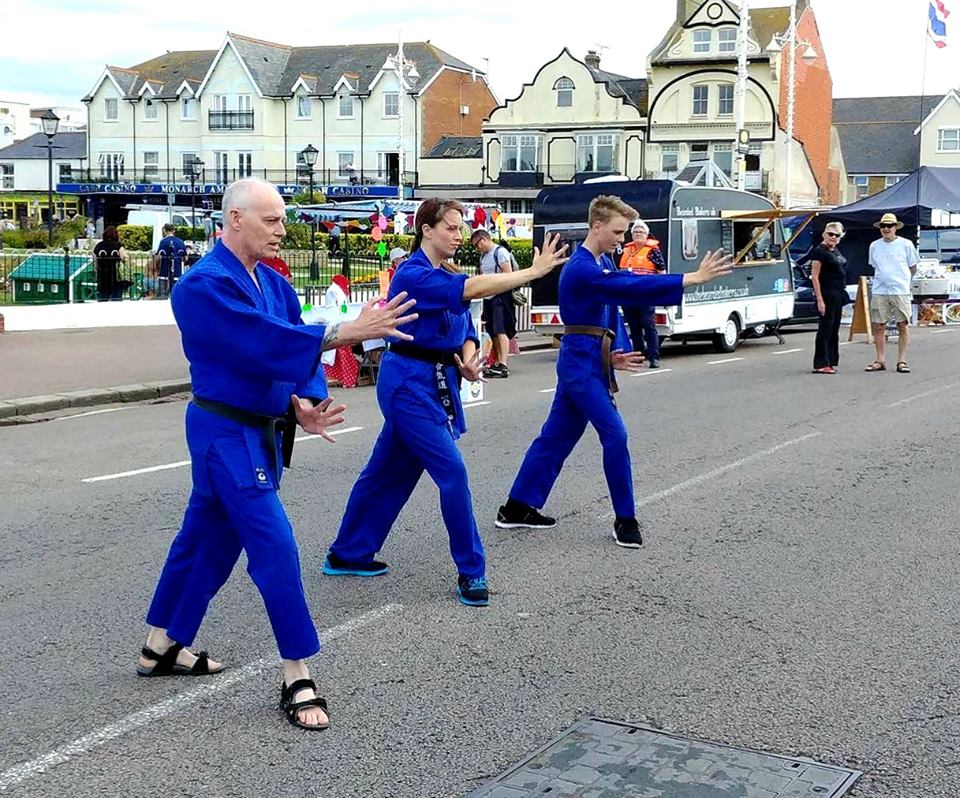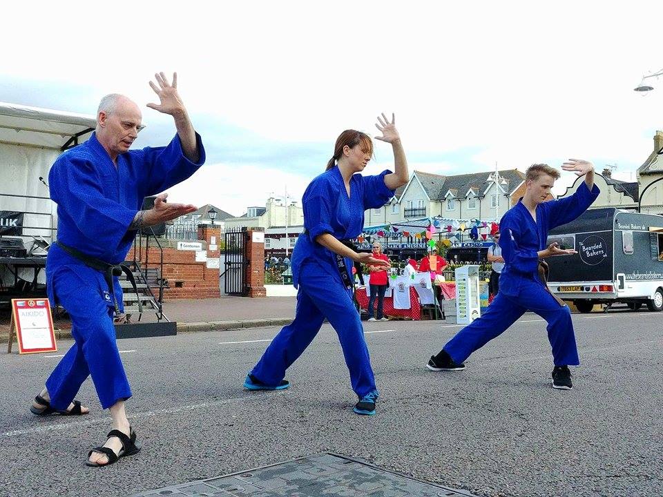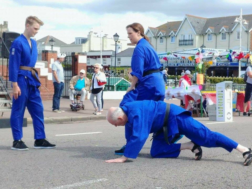Well, first of all we weren't able to use mats, because we had to demonstrate our aikido on a concrete road by the Pier in Bognor Regis. We usually find a softer surface like grass and bring along some mats for our demonstrations.