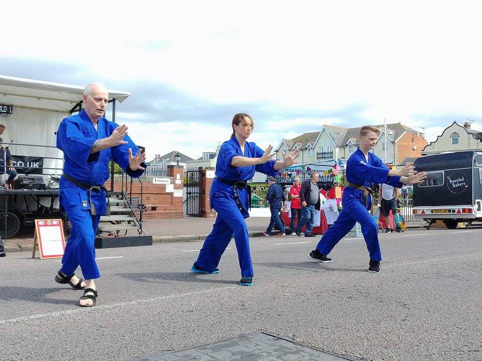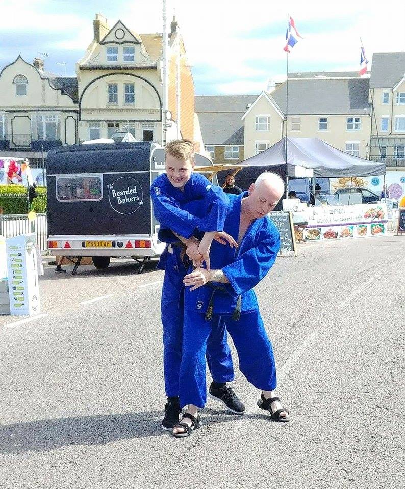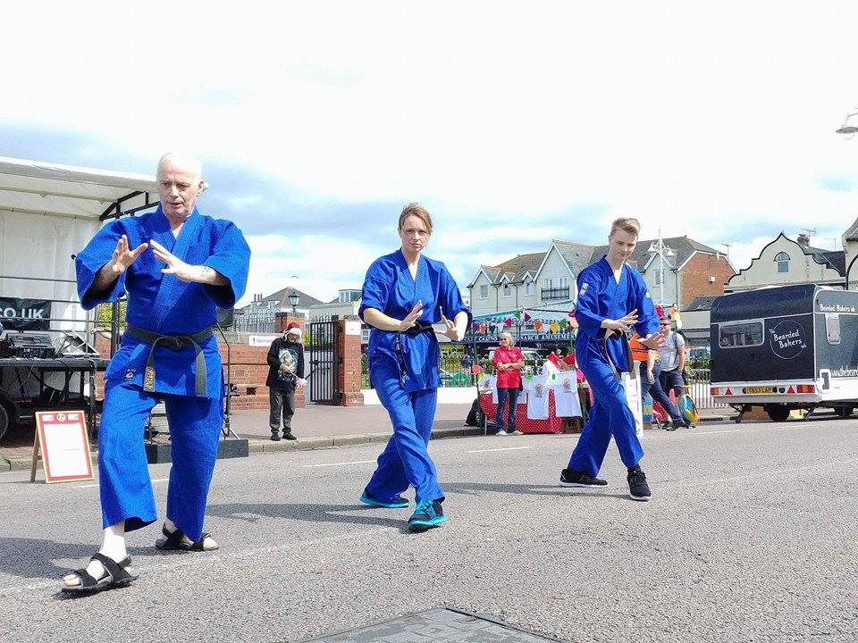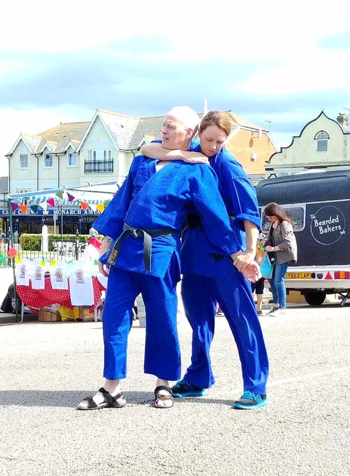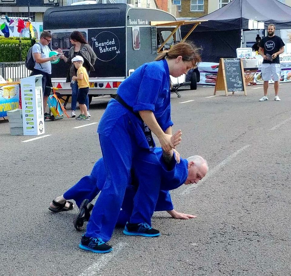Well, first of all we weren't able to use mats, because we had to demonstrate our aikido on a concrete road by the Pier in Bognor Regis. We usually find a softer surface like grass and bring along some mats for our demonstrations.
